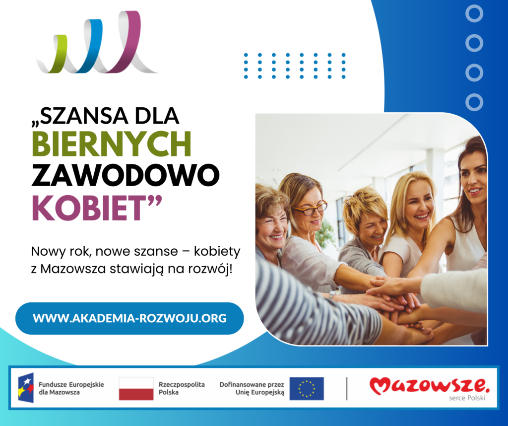 Projekt - Szansa dla biernych zawodowo kobietNowy rok, nowe szanse – kobiety z Mazowsza stawiają na rozwój! 9 stycznia 2025